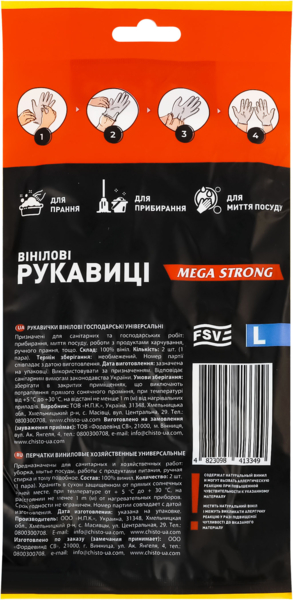 - Перчатки виниловые Chisto размер L 1 пара