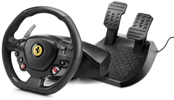 Thrustmaster Т 80 — руль и педали, которые применяются игроками для гоночных игр. Эта модель является самой популярной. Она характеризуется удобной конструкцией, комфортно ощущается в руках благодаря текстурированному резиновому покрытию, а также обладает лаконичным, современным дизайном. Модель с точностью повторяет конструкцию руля «Феррари 488 GTB», только в миниатюрном формате. Размер аксессуара уменьшился и составляет 28 см, что дает возможность ощутить себя настоящим гонщиком.