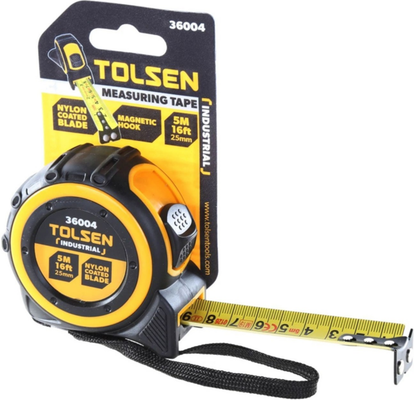 Рулетка Профи Tolsen представляет собой специализированный ручной инструмент, предназначенный для измерения длины. Модель оснащена металлической измерительной лентой с нанесенными на нее шкалами – миллиметровой и дюймовой, имеет класс точности II.