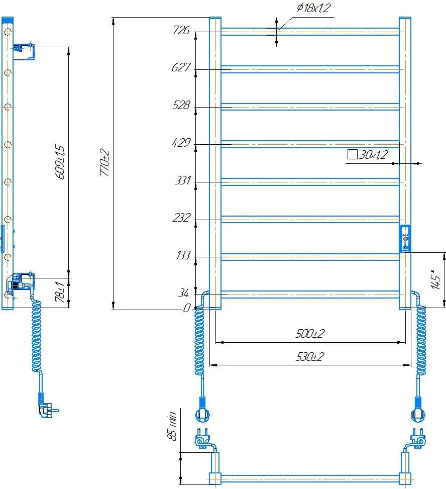 Электрический полотенцесушитель HF Leeds работает по технологии сухого ТЭНа. Модель имеет 8 ребер из круглой трубы и стойки из квадратного профиля. Материал - черная сталь с антикоррозийной обработкой.
