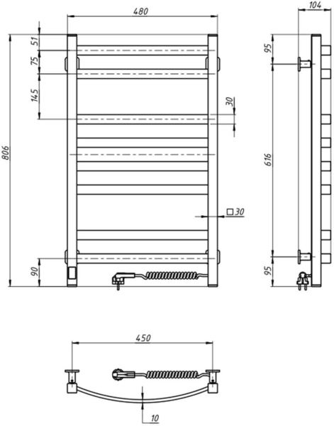 Полотенцесушитель Navin электрический Avalon, 800х480х104мм, черный (12-203053-4880)