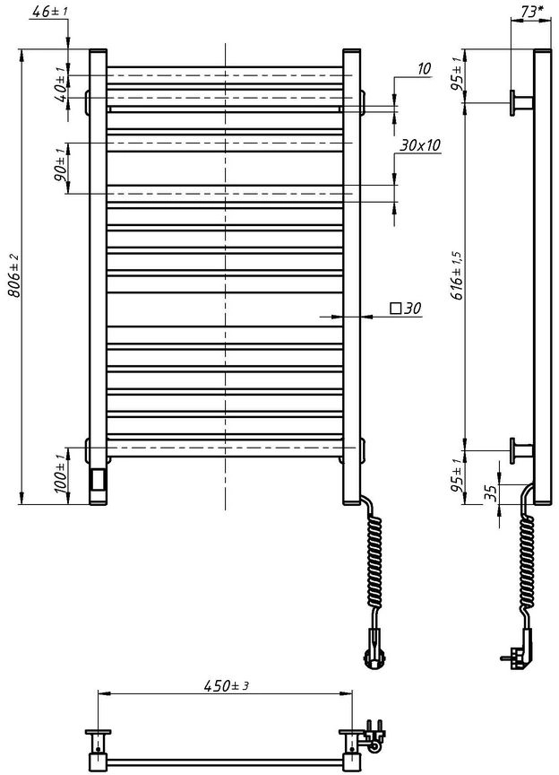 | Комплектация (возможны изменения в разных поставках) | Документация, Крепление - 4 шт., Полотенцесушитель, Шестигранный ключ |