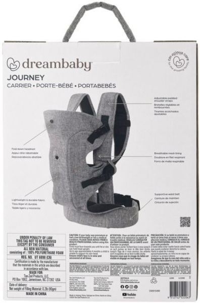 Откройте для себя Dreambaby Journey Carrier - удобное и поддерживающее решение для родителей и их детей. Почувствуйте радость от легкой и удобной переноски вашего малыша и оставайтесь на связи, наслаждаясь удобством свободных рук.