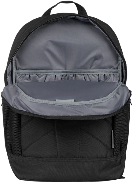 Спинка смягчена, поэтому носить тяжелый ноутбук будет удобнее и комфортнее. Шлейки широкие. Их можно регулировать по своему росту. Производитель оснастил рюкзак ручкой для удобного его переноса в руке. Дизайн рюкзака классический, выполнен в черном цвете, что делает его универсальным и очень практичным.