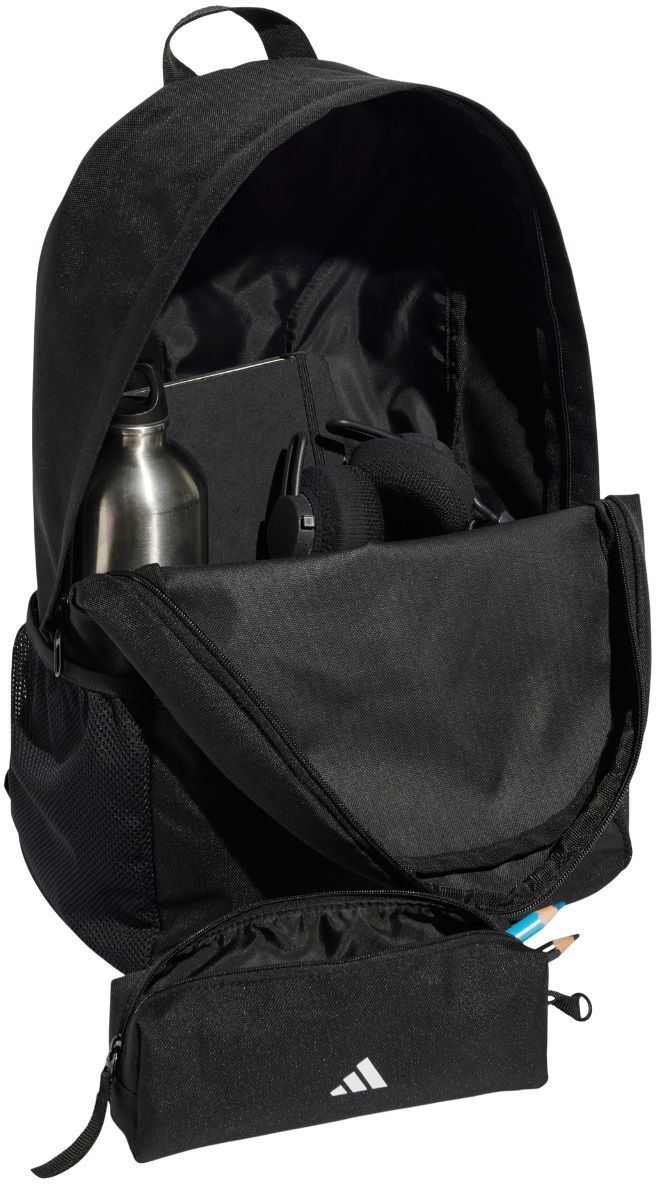 Подготовься к учебе с этим рюкзаком и пеналом adidas. В этом легком, но прочном рюкзаке найдется место для тетрадей, бутылки с водой и других предметов. Отдельный пенал на молнии обеспечивает хранение ручек и карандашей. Регулируемые плечевые ремни обеспечивают комфорт в течение всего дня. При изготовлении этого изделия использовано не менее 50% переработанных материалов. Повторное использование материалов, которые уже были созданы, помогает уменьшить количество отходов и зависимость от ограниченных ресурсов, а также сократить воздействие производимой продукции.