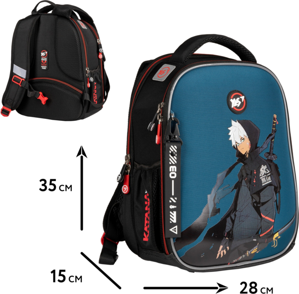 Совершенная и сверхлегкая модель каркасного рюкзака H-100 от бренда Yes - это не просто школьный рюкзак, а идеальный рюкзак для первоклассника. Ведь именно рюкзак Yes H-100 разработан для детей, которые впервые собираются в школу - его форма «панцирь» является легкой и в то же время очень вместительной, что позволит разместить все необходимые школьные принадлежности. Главным преимуществом рюкзака Yes H-100 является его компактность и легкость. Каркас рюкзака изготовлен из плотного EVA материала, который не деформируется даже при легком давлении, сохраняя форму при неравномерной загрузке рюкзака. Внешний материал ортопедического рюкзака – прочный полиэстер. Разработан специально для детей, с учетом физиологических потребностей малышей, идеально подходит для первоклассников. Ортопедическая спинка рюкзака обеспечивает максимальный комфорт ребенка, оптимально поддерживает позвоночник и равномерно распределяет вес рюкзака, предотвращая чрезмерное давление на отдельные участки спины. Интегрированная система вентиляции, выполненная из «дышащего» сетчатого материала, обеспечивает постоянный поток свежего воздуха, что предотвращает перегрев спины во время ношения. Анатомические S-образной формы уплотненные лямки снижают нагрузку на плечи, благодаря чему школьник не испытывает дискомфорта при ношении рюкзака. Миниатюрный и легкий, изготовленный из высококачественных материалов, обладает повышенной прочностью и водонепроницаемостью. Это гарантирует длительную эксплуатацию и защиту от неблагоприятных погодных условий. Герой в стиле аниме на школьном рюкзаке Yes H-100 Katana позволит вашему ребенку выразить свою индивидуальность и перенести часть собственного любимого мира в школьную жизнь!