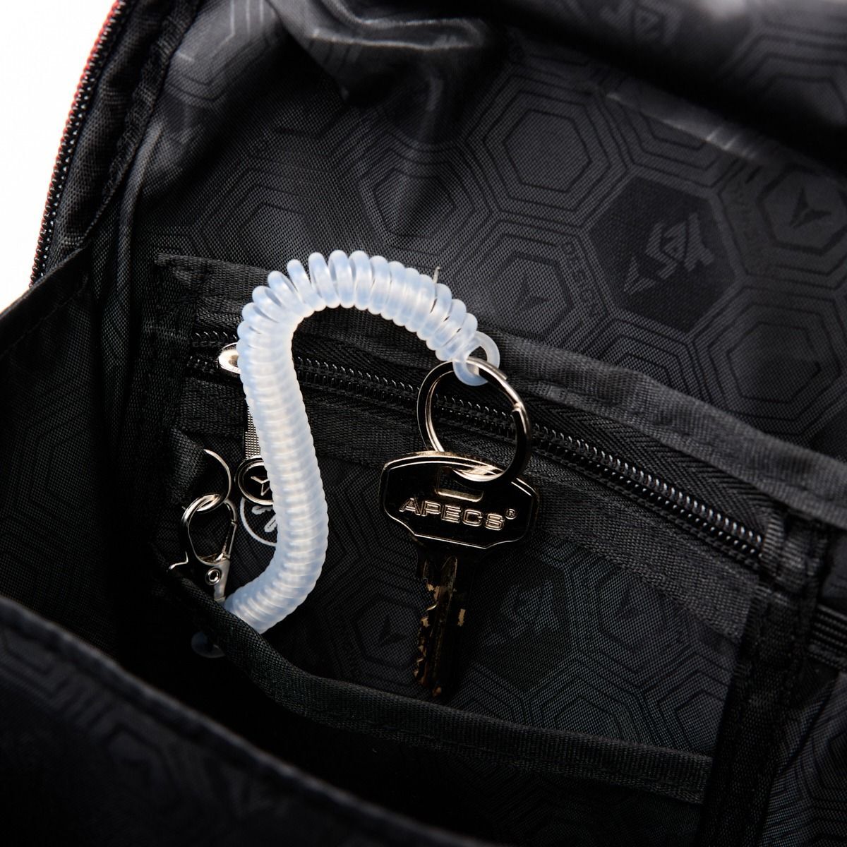 - Скрытый карман на спинке для ценных вещей.