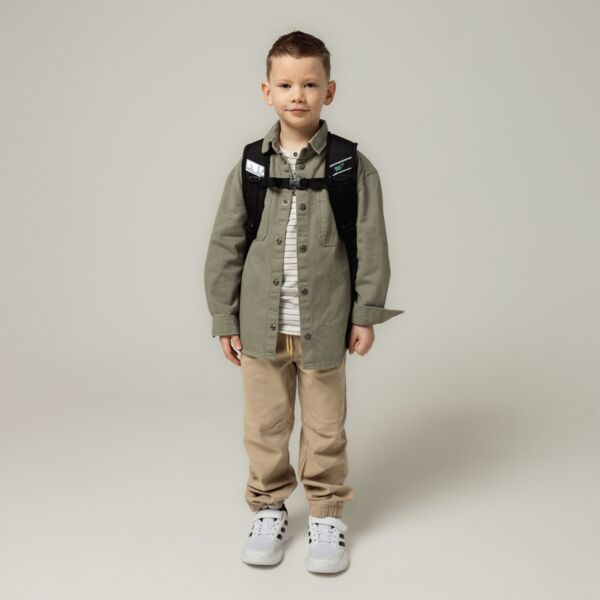 - Нагрудный ремень с регулировкой по высоте для надежной фиксации рюкзака на спине ребенка.