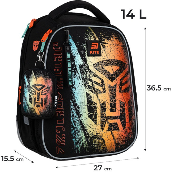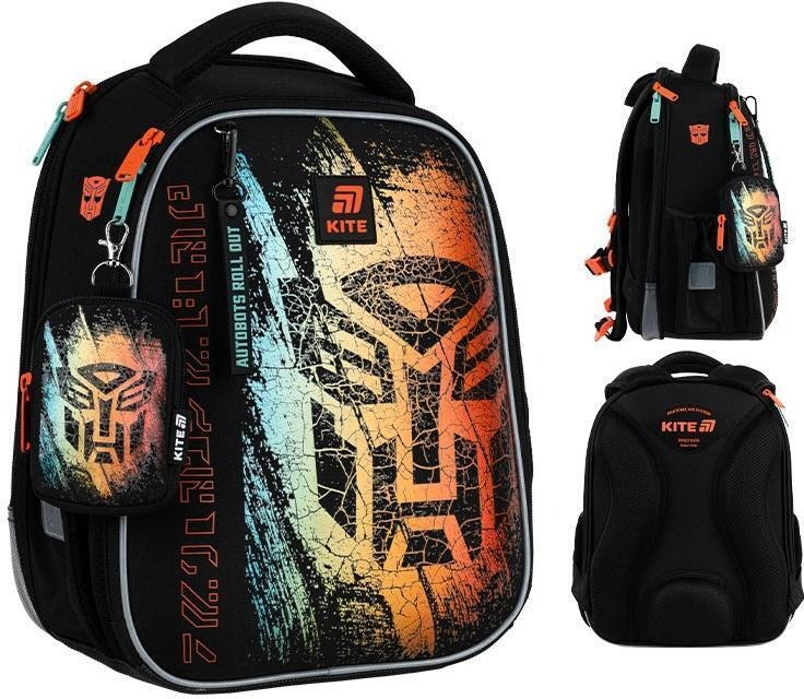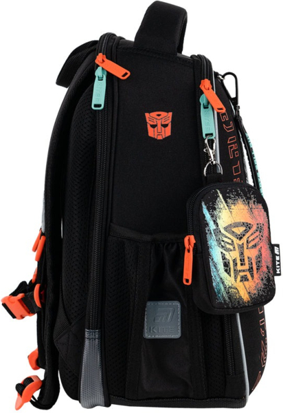 Каркасный рюкзак Kite TF25-555S - ортопедическая модель, разработанная для детей, которые идут в школу в 6 лет. Поэтому он самый легкий и самый миниатюрный из каркасных рюкзаков. Идеально подходит для первоклассников! Трендовая модель «черепашка» с плавным обтекаемым силуэтом - настоящий бестселлер для начальной школы. Стильный дизайн и отличная функциональность рюкзака не осталась незамеченной: 555 модель - настоящая звезда школьных будней. Родители могут быть спокойны: этот рюкзак позаботится об осанке ребенка, а маленьких учеников порадует его эффектное оформление. Модель одобрена немецким Институтом Здоровья и Эргономики IGR. Благодаря продуманной до мелочей ортопедической конструкции, рюкзак равномерно распределяет вес, снижает нагрузку на плечи, спину и поясницу. Рекомендован для детей ростом от 115 до 130 см. Каркасные модели помогают непоседам поддерживать канцелярию в аккуратном виде: жесткие панели защищают книги и тетради от повреждений. Передняя уплотненная панель расстегивается книзу, чтобы ребенку было удобно складывать и извлекать учебники и канцелярские принадлежности. Рюкзак прошел испытания на прочность материалов и износостойкость фурнитуры. Высококачественные молнии, прочный текстиль: каждая деталь продумана до мелочей. Стильный дизайн в любимой детской лицензии Transformers будет вдохновлять учиться с удовольствием. Приятный бонус от Kite. Вместе с рюкзаком вы получаете стильный кошелек с карабином, который можно носить как пристегнутым к рюкзаку, так и отдельно, как самостоятельный аксессуар.