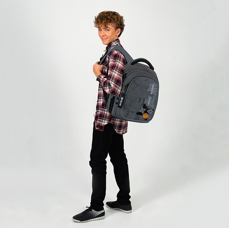 Рюкзак Kite NR25-8001M – незаменимый рюкзак для школы, экскурсий, поездок, прогулок и досуга. Благодаря множеству удобных отделений и карманов, каждая вещь будет на своем месте. Ортопедическая конструкция позаботится о комфорте и здоровье спины. Продуманная организация внутреннего пространства, потрясающая вместимость и трендовый дизайн. Воплощение комфорта и безупречного европейского качества. Модель рекомендована для подростков от 9-12 лет, ростом от 130 см. Подарок к рюкзаку – модный шнурок для телефона. Эффектный дизайн в трендовой лицензии Naruto: ходить в школу вместе с любимыми персонажами и транслировать свои предпочтения – то, что так любят школьники! Фишка этого рюкзака — нашивка с липучкой, которая дает возможность легко менять его дизайн под настроение. Бейджи крепятся на липучку, что позволяет быстро кастомизировать рюкзак в любом стиле.