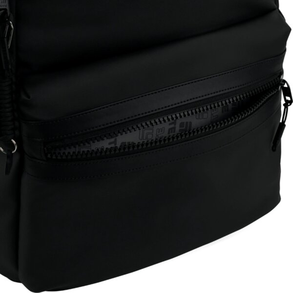 Передний карман на молнии. Два боковых кармана - для бутылочки с водой или небольшого термоса. Карман для планшета. Карман для телефона с плюшевой подкладкой. Карман для ноутбука. Карман на молнии с сеткой - для мелких вещей.
