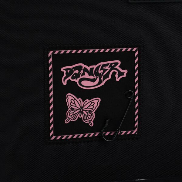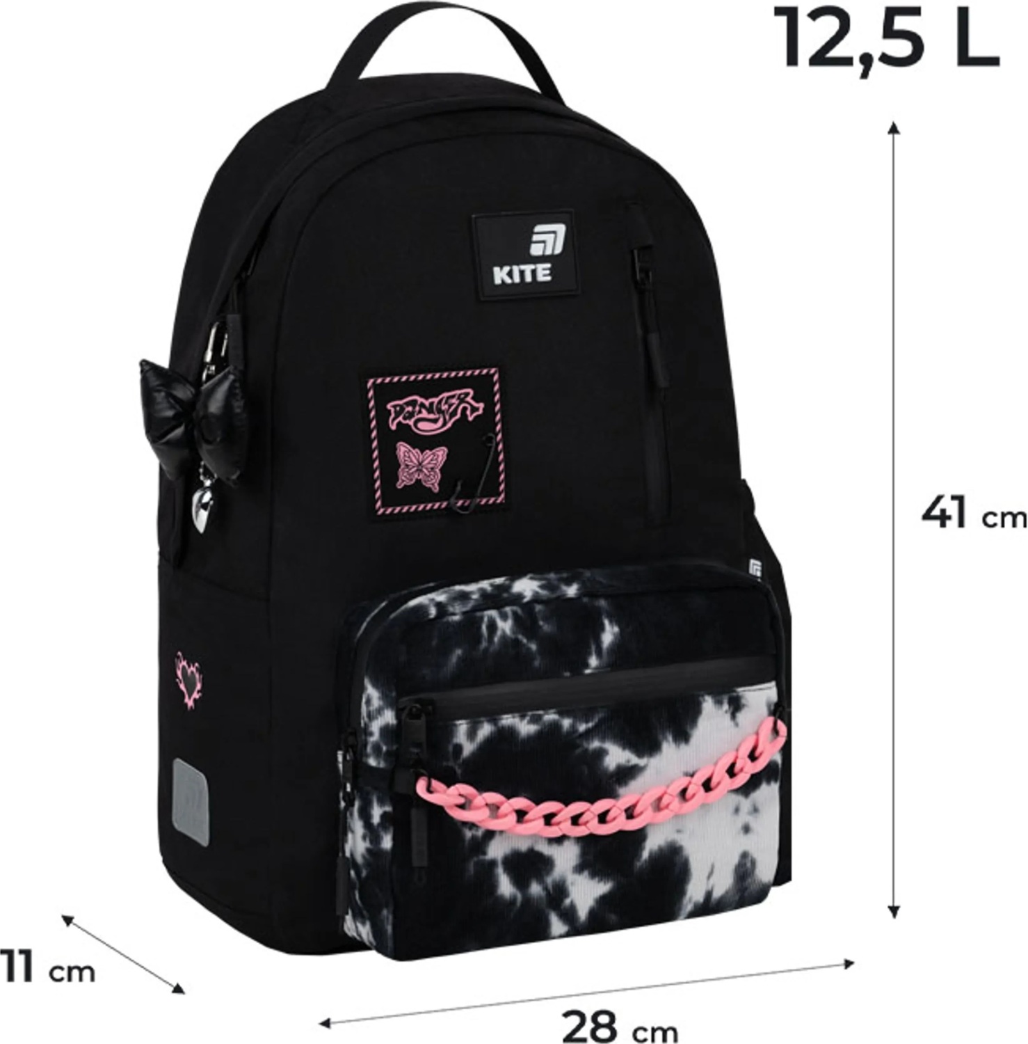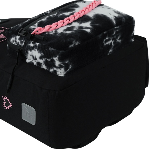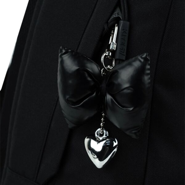 - Декор: аппликация из комбинированных материалов, объемная печать, карман из вельвета, пластиковая декоративная цепочка, мягкий брелок-подвеска из комбинированных материалов.