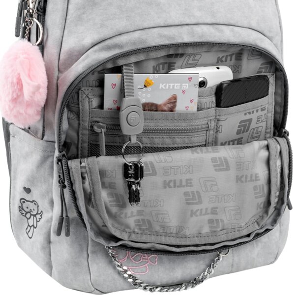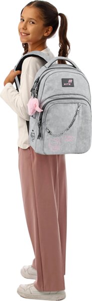 Рюкзак Kite 2578 сочетает в себе модный дизайн и крутую функциональность. Модель рекомендована для детей ростом 130-145 см. Рюкзак эффектно дополнит стиль и станет любимым аксессуаром для школы и прогулок по городу.