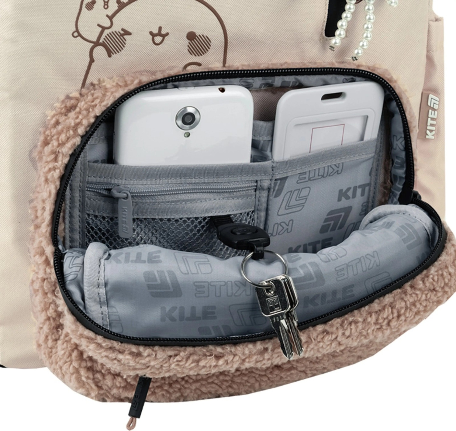 - Декор: объемная печать, плюшевый карман, брелок-подвеска из комбинированных материалов.