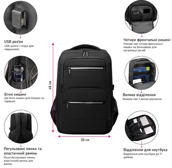 - Отделение для ноутбука до 17 дюймов;