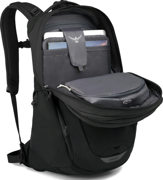 Osprey Radial - стильный, удобный и хорошо вентилируемый рюкзак, который идеально подходит для активного отдыха. Задняя панель AirSpeed с подвесной сеткой обеспечивает превосходную вентиляцию и максимальный комфорт во время движения. Интегрированная подставка Kickstand держит рюкзак в вертикальном положении, обеспечивая легкий доступ к его содержимому. Благодаря системе расширения на молнии, объем модели регулируется от 26 до 34 литров.