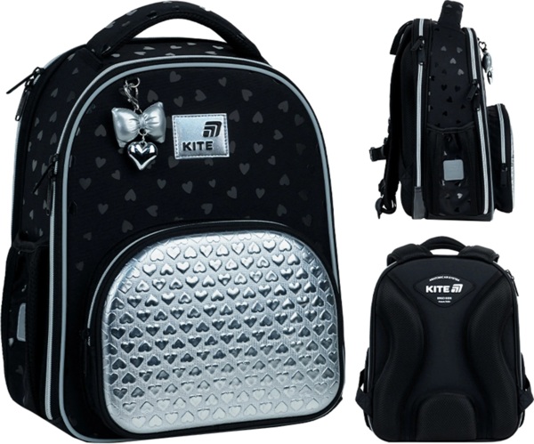 - Рюкзак школьный каркасный Kite Education Black&Silver K26-556M-2