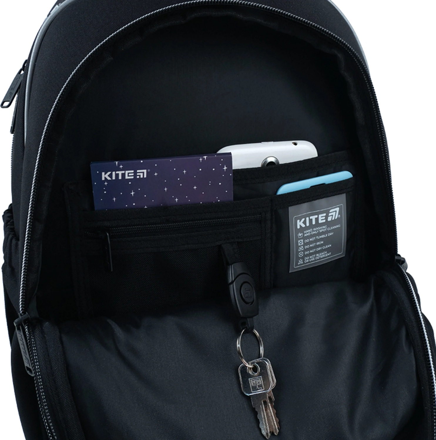 - Большой передний уплотненный карман на молнии;