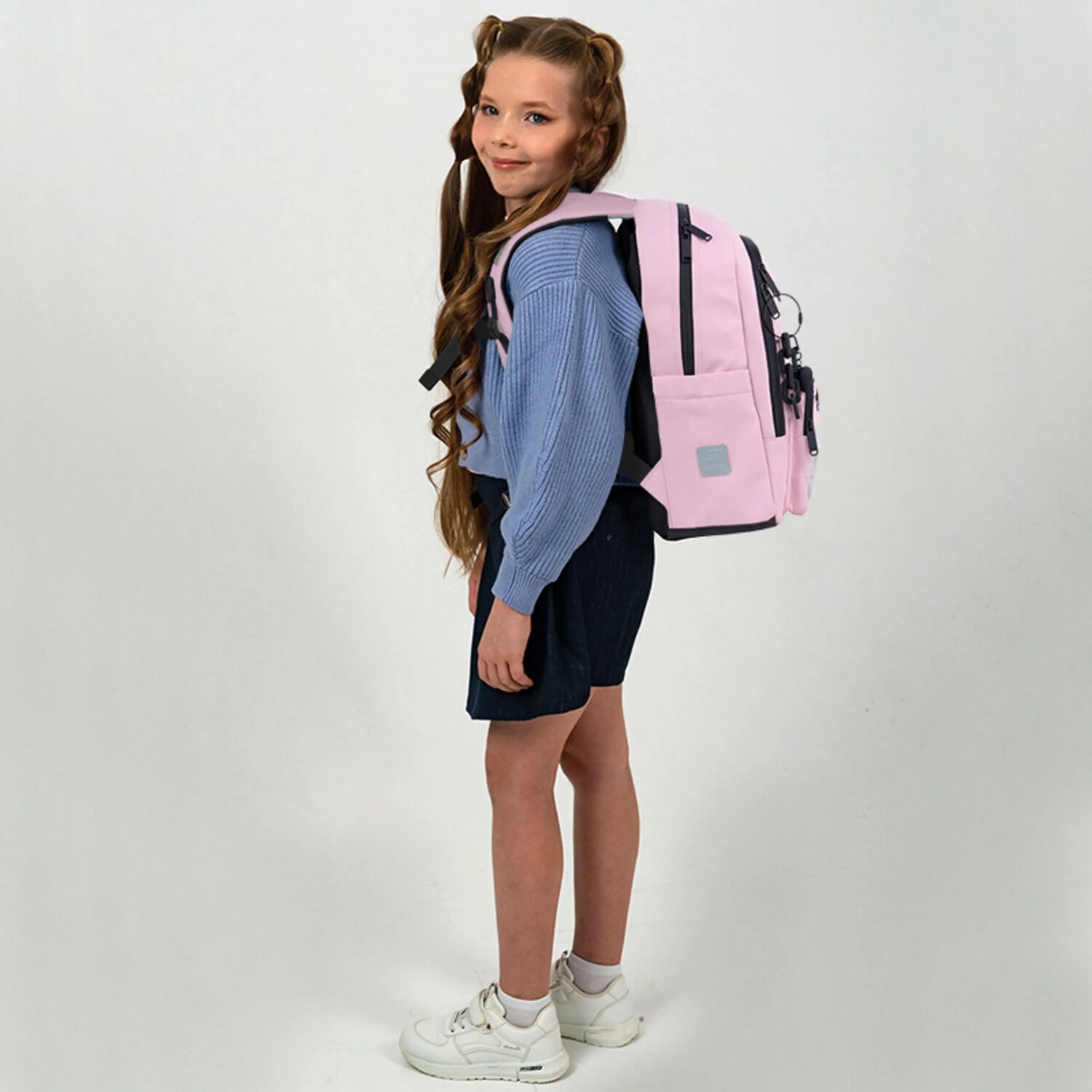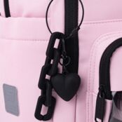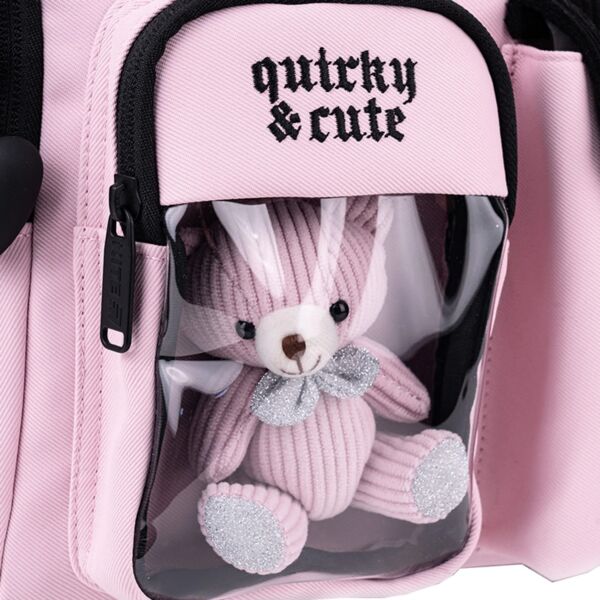 - Декор: плотный матовый твил, вышивка, объёмная печать, прозрачный карман с игрушкой, клапан кармана из вельвета, брелок-подвеска из комбинированных материалов.