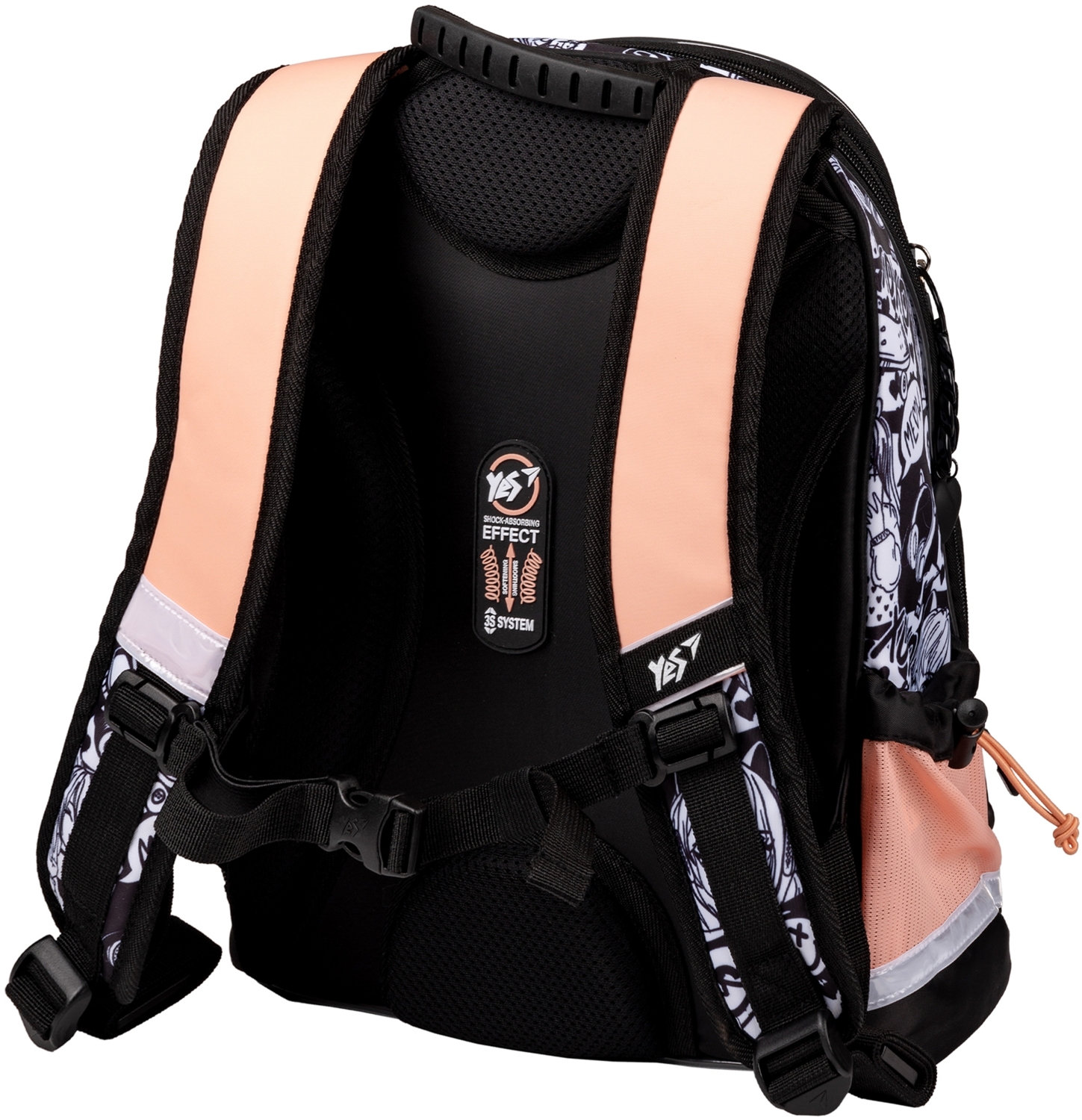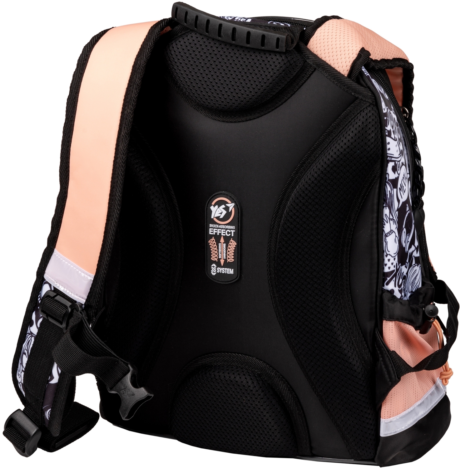 Особенностью и основным преимуществом модели является инновационная система 3S. Это новейшая разработка в области эргономики, созданная специально для школьников с учетом их физиологических потребностей при активном движении. Система 3S представляет собой особую конструкцию крепления лямок, которая является частью спинки рюкзака. Система 3S существенно уменьшает нагрузку на позвоночник и давление на плечи ребенка во время движения благодаря эффекту амортизации нагрузки. Опытным путем установлено, что школьный рюкзак Yes с ортопедической спинкой и системой 3S уменьшает (до 70%) давление на плечи ребенка при ходьбе чем обычные рюкзаки. Уникальные характеристики системы 3S имеют патентные подтверждения. Благодаря 3S ваш школьник захочет самостоятельно носить свой рюкзак в школу, потому что это будет очень легко!