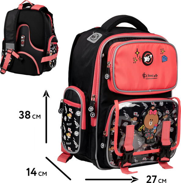 Рюкзак S-101 имеет 1 вместительное отделение с органайзером, что позволяет легко разместить учебники и тетради, а 2 передних и 2 боковых кармана помогут держать в порядке школьные принадлежности и другие мелкие вещи. Откидное дно внутри рюкзака придает ему устойчивость. В модели ортопедического рюкзака S-101 тщательно подобраны ткани и фурнитура, ведь они обеспечивают комфорт в использовании и долговечность рюкзака. Яркий принт на рюкзаке Yes Line Friends S-101 непременно понравится маленькой школьнице. Его интересная особенность - это прозрачный кармашек, который позволяет быстро проверить наличие всего необходимого для школы и сокращает время на поиски.