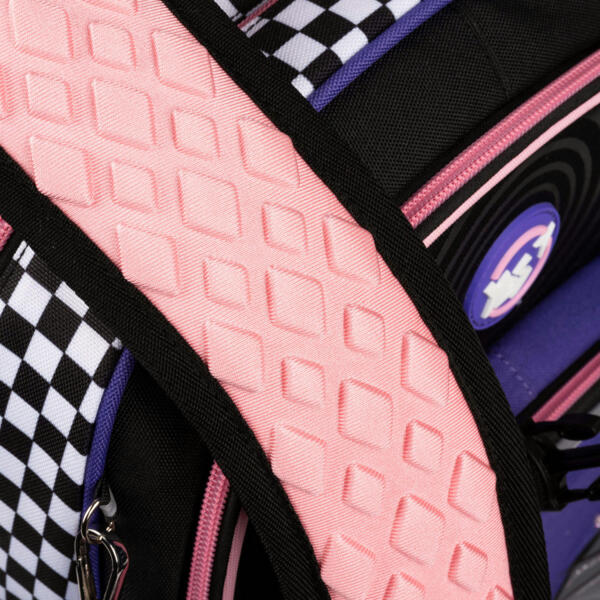 Ортопедическая спинка рюкзака продумана до мелочей и обеспечивает равномерное распределение нагрузки на все отделы позвоночника. Смягчающие подушечки расположены таким образом, чтобы массажный эффект осуществлялся в наиболее напряженных участках спины ребенка для максимально комфортной носки.