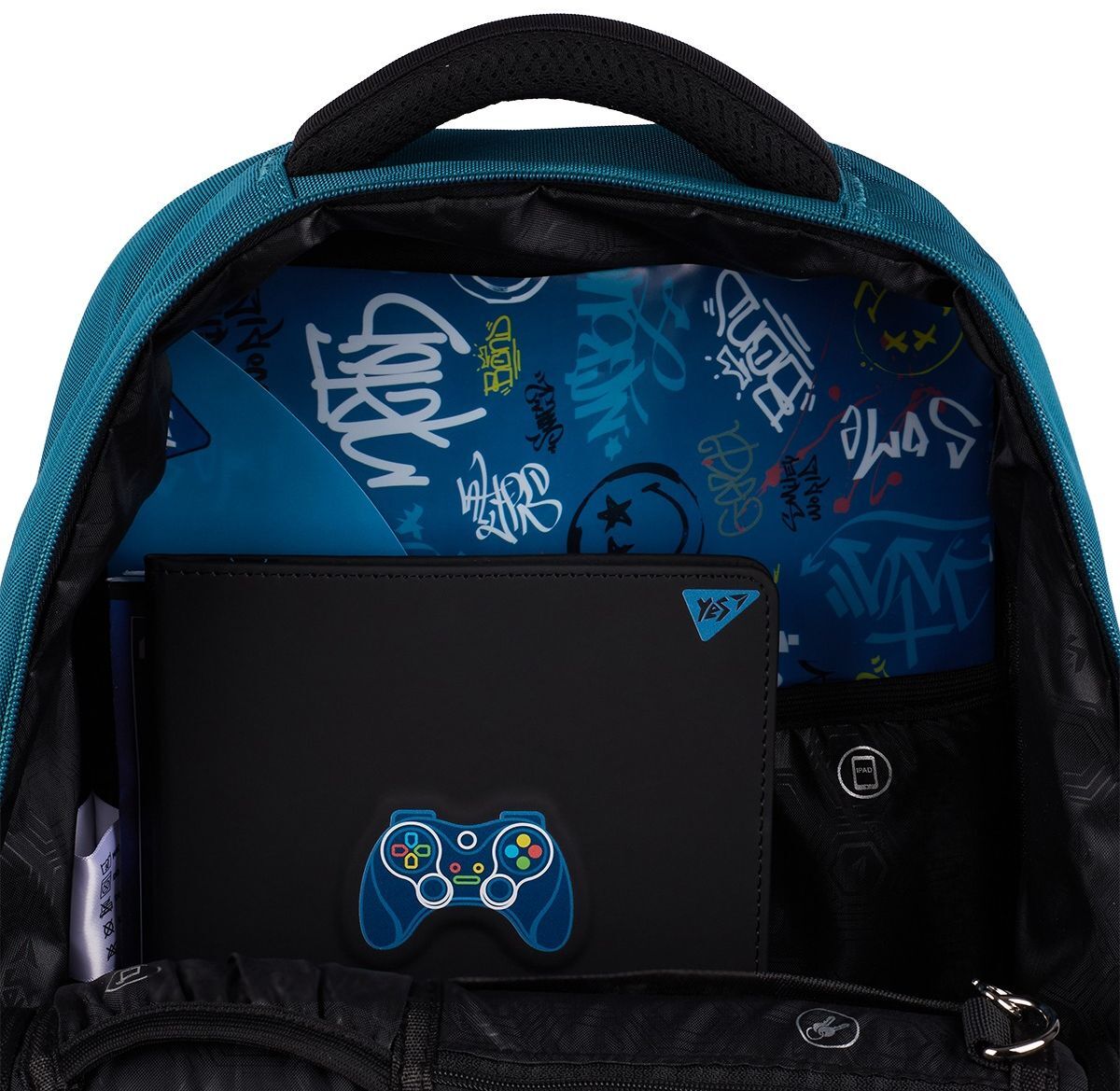 Модель S-101 от бренда Yes - это школьный полукаркасный рюкзак с ортопедической спинкой, который подарит необычайный комфорт вашему ребенку в школьной жизни. Благодаря своим функциональным особенностям именно этот школьный рюкзак является идеальным выбором для младших школьников. Уплотненный корпус прекрасно держит форму. Удобная ортопедическая спинка обеспечит правильную осанку вашего ребенка, даже когда рюкзак будет перегружен учебниками, тетрадями и другими вещами. Пластиковая панель в спинке рюкзака S-101 придает ему дополнительную плотность и прочность. Благодаря учету всех потребностей к ортопедической спинке, школьник не будет испытывать дискомфорта при длительном ношении. Откидное дно внутри рюкзака придает ему устойчивость. Геймерская тематика, использованная в дизайне, чрезвычайно популярна среди школьников младшего возраста. Прорезиненные патчи, тематический принт и брелок привлекут внимание школьника, увлекающегося компьютерными играми.