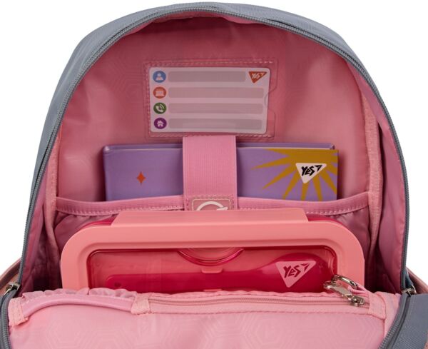 Школьный ортопедический рюкзак S-104 - это миниатюрная и мягкая модель без какого-либо утяжеления конструкции избыточным функционалом. Этот рюкзак имеет одно просторное отделение, ортопедическую спинку, конструкцию которая утверждена патентом. Анатомические S-образные плечевые ремни регулируются по длине, поэтому обеспечат комфортное расположение рюкзака. Нагрудный ремень поможет надежно зафиксировать рюкзак на ребенке. Удобные прорезиненные пуллеры с металлической основой будут служить долго в активной жизни владельца рюкзака. Внутренний органайзер школьного рюкзака S-104 разработан специально для нужд детей в младшей школе. Рюкзак имеет прозрачный карман для школьного бейджа, ключницу-пружинку для надежного хранения ключей, а также карманы для гаджетов с флисовой мягкой подкладкой. Рюкзак Yes S-104 Glamour Kitty влюбит в себя с первого взгляда, благодаря своему необычному дизайну. Классическое сочетание серого и розового цветов, дополненное глиттерными элементами, создает эффектный и стильный вид, который не оставит равнодушной юную школьницу. Неординарное дизайнерское исполнение дополнительного кармашка придает рюкзаку еще больше шарма, превращая его в настоящее произведение искусства.