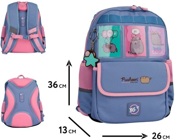 Школьный ортопедический рюкзак S-104 - это миниатюрная и мягкая модель без какого-либо утяжеления конструкции избыточным функционалом. Этот рюкзак имеет одно просторное отделение, ортопедическую спинку, конструкцию которая утверждена патентом. Анатомические S-образные плечевые ремни регулируются по длине, поэтому обеспечат комфортное расположение рюкзака. Нагрудный ремень поможет надежно зафиксировать рюкзак на ребенке. Удобные прорезиненные пуллеры с металлической основой будут служить долго в активной жизни владельца рюкзака. Внутренний органайзер школьного рюкзака S-104 разработан специально для нужд детей в младшей школе. Рюкзак имеет ключницу-пружинку для надежного хранения ключей и карманы для гаджетов с флисовой мягкой подкладкой. Рюкзак Yes S-104 Pusheen Stay Cool станет настоящим хитом среди маленьких модниц, позволяя им всегда быть на стиле. Любимец девичьей публики, милый пухлый котик Пушин, будет дарить хорошее настроение своей обладательнице, сопровождая ее во всех школьных повседневных приключениях.