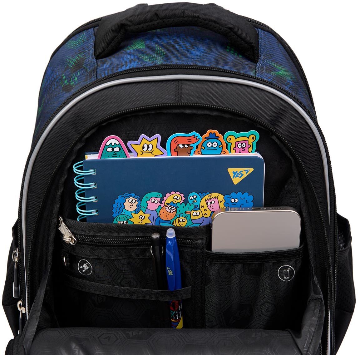 Мягкий школьный рюкзак S-111 Yes удобен и надежен в использовании. Рюкзак уплотнен по всему корпусу, поэтому хорошо сохраняет форму и внешний вид. Школьный ортопедический рюкзак S-111 имеет три отделения, в которых удобно размещать тетради, учебники, папки и другие вещи, которые необходимы в школе. Внутренний органайзер разработан с вниманием к мелочам, поэтому всем необходимым в школе вещам найдется свое место. К тому же ребенок будет приучать к порядку.