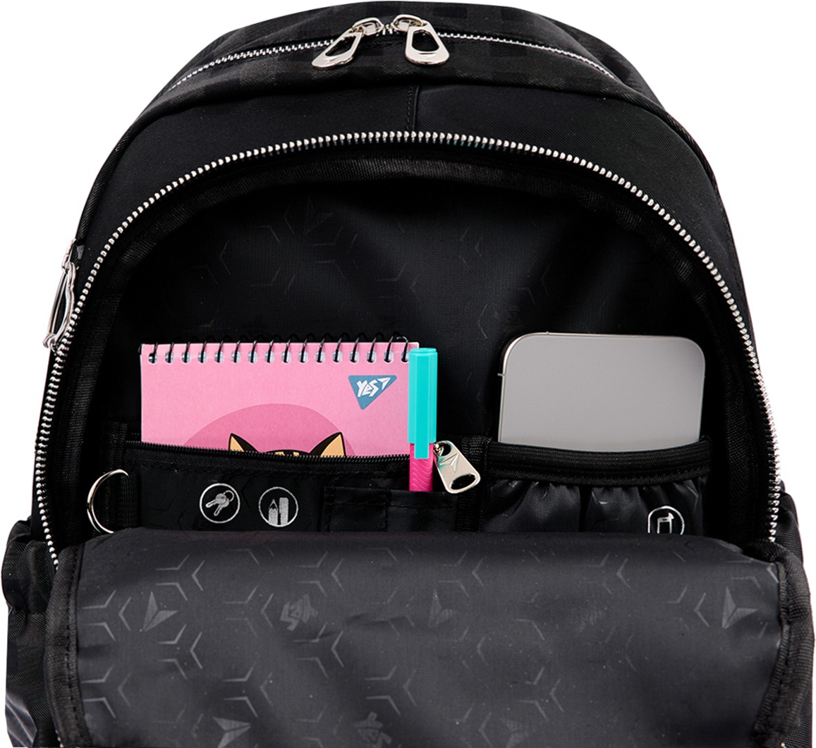 Рюкзак TS-47 от бренда Yes впечатляет конструктивными решениями и дизайнерским исполнением. Модель рюкзака Yes TS-47 является многофункциональной, поэтому она станет надежным компаньоном своему владельцу в школе и на досуге. Как школьный рюкзак, модель TS-47 от бренда Yes имеет все необходимое, чтобы удовлетворить потребности подростка в школе. Ортопедическая спинка позаботится о правильной осанке, S-образные лямки позаботятся о равномерном распределении нагрузки на спину и плечи, а тщательно разработанный внутренний органайзер поможет держать в порядке все школьные вещи и канцелярские принадлежности. Два больших отделения и два вместительных передних кармана – это находка для тех, кто любит носить все с собой. В боковых карманах поместится бутылка с водой или термос, а также другие мелкие вещи. Благодаря такой многофункциональной конструкции рюкзак TS-47 от бренда Yes является универсальным на все случаи подростковой жизни. В школу, спортзал или на прогулку с другом – вместе с рюкзаком TS-47 от торговой марки Yes. Изготовленный из высококачественных материалов, имеющий надежную металлическую фурнитуру, тщательно подобранную по цвету в тон дизайну, рюкзак TS-47 удовлетворит требовательных и самых придирчивых подростков.
