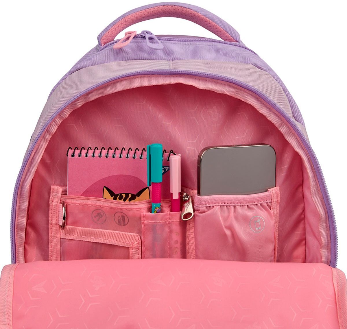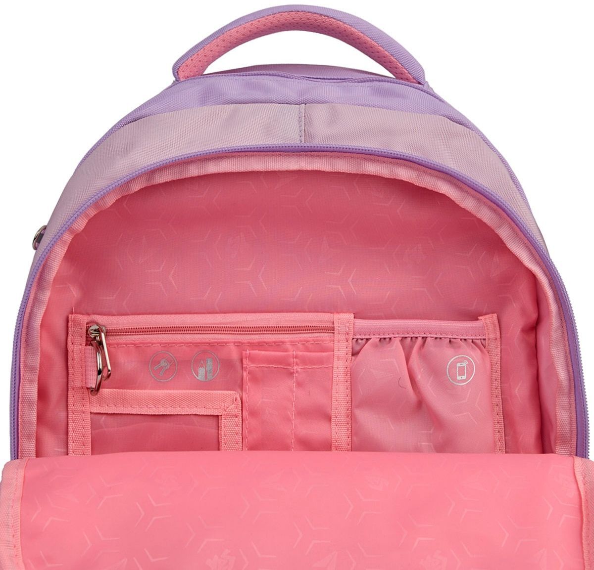 - 2 просторных передних кармана для школьных принадлежностей, пенала и других вещей небольшого размера.