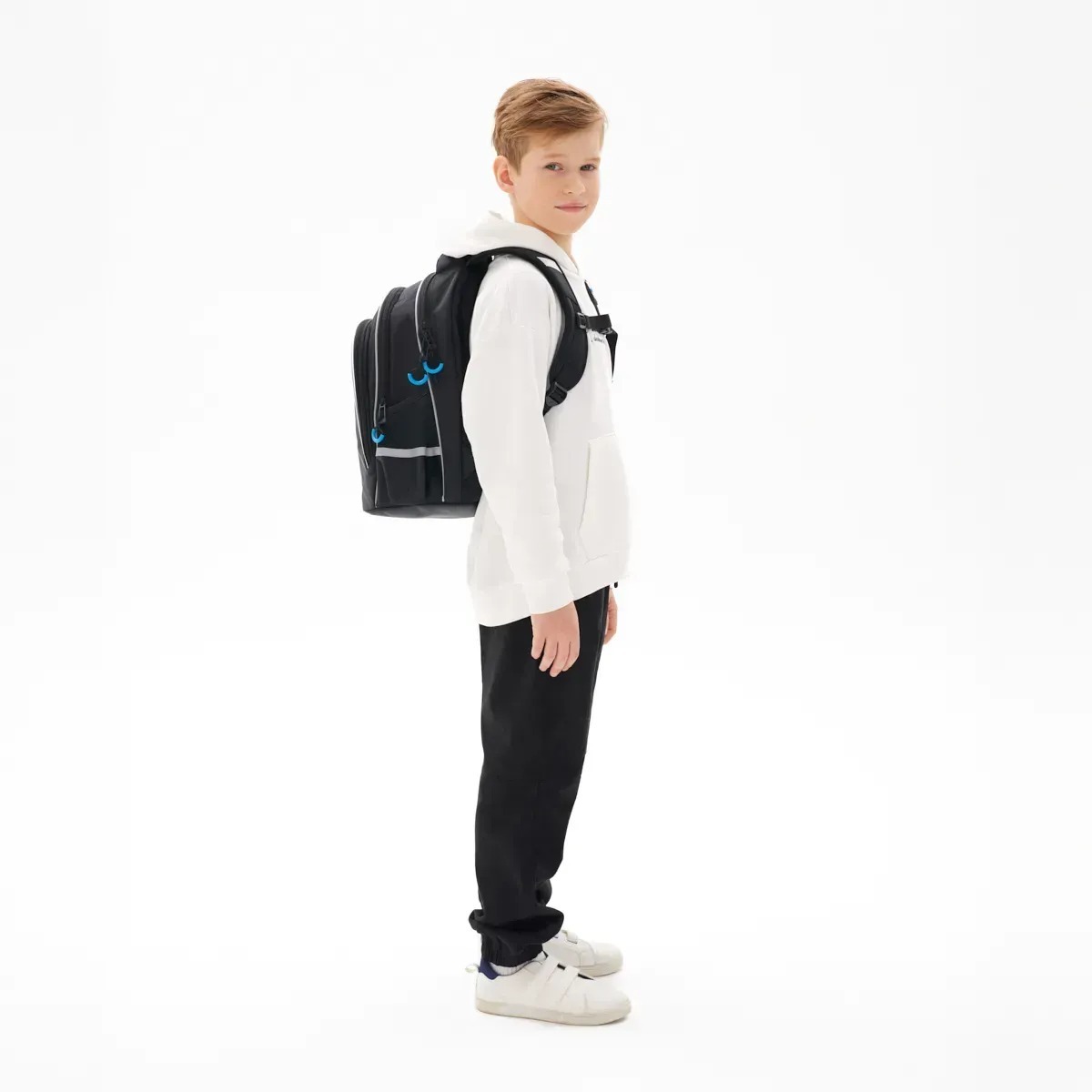 - Нагрудный ремень с регулировкой по высоте для плотного прилегания рюкзака к спине подростка.