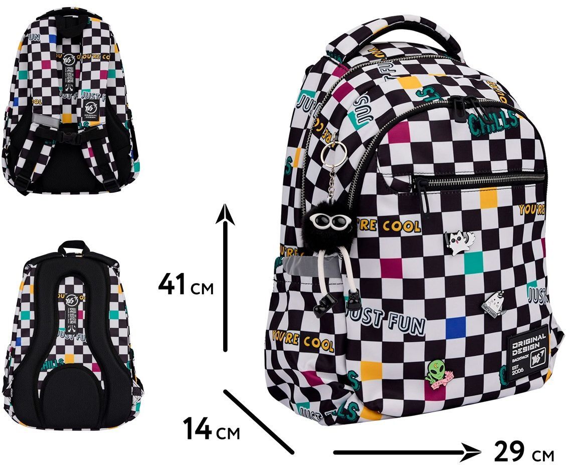 - 1 передний карман для школьных принадлежностей.