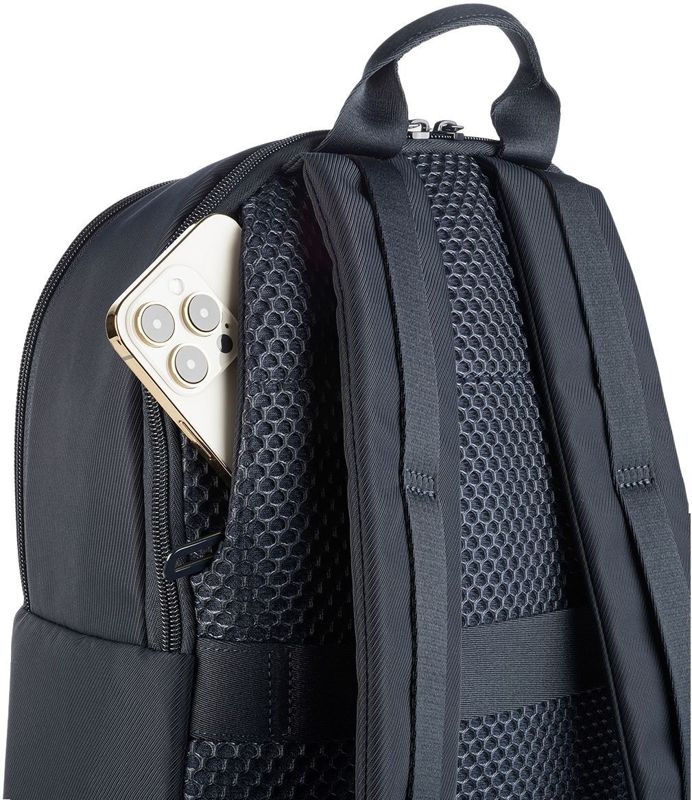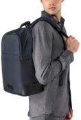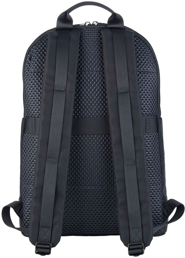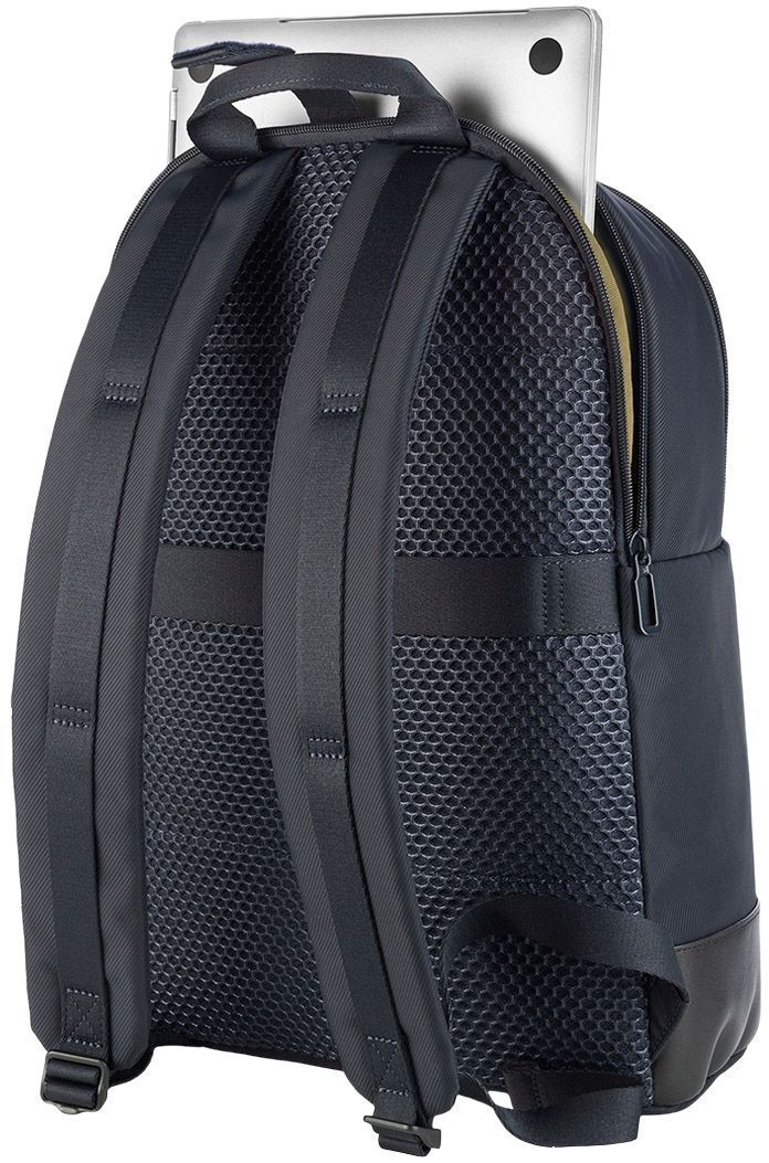 Вместительный бизнес-рюкзак, который является одновременно незаменимым и элегантным. Разработанный для ноутбуков 15,6 дюймов и MacBook 16 дюймов. Изготовлен из высокотехнологичной ткани из переработанного пластика и с кожаными акцентами, рюкзак Fine имеет вместительный внешний карман и двойное внутреннее отделение, разделенное застежками-молниями, что также идеально подходит для коротких деловых поездок. Он имеет хорошо организованные внутренние карманы и мягкое отделение для вашего ноутбука. Задняя панель, украшенная изысканной сеткой, оснащена защитным карманом и ремешком для крепления рюкзака к чемодану.
