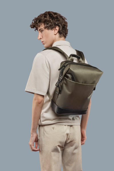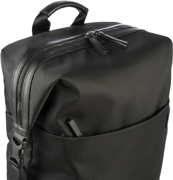 Деловой рюкзак из ткани, изготовленной из переработанного пластика. Имеет кожаные элементы и внутреннее отделение с двойным защитным карманом для 15,6-дюймового ноутбука или 16-дюймового MacBook. Рюкзак Modo Premium имеет большое, удобное верхнее отверстие, которое можно открывать с обеих сторон, хорошо организованные отделения, эргономичную спинку и ремень для переноски на чемодане. Также имеется потайной карман, который расположен на спинке рюкзака.