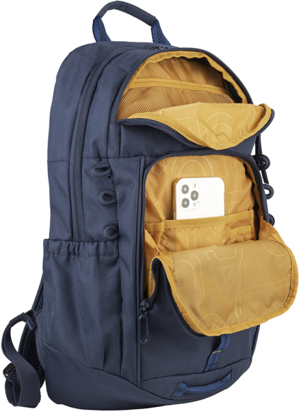 Рюкзак, предназначенный для ноутбуков 15,6-дюймовых и 16-дюймовых MacBook Pro, изготовлен из ткани, произведенной из переработанного пластика. Спортивный стиль, отличная организация мест для хранения и контрастная расцветка внутренней части - все это придает рюкзаку Ring активный и универсальный дизайн, который еще больше подчеркивается полосатой тесьмой. В центральном внутреннем отделении находятся отдельные места, специально предназначенные для ноутбука и планшета. На передней стороне расположен карман для аксессуаров, а на спине - регулируемые плечевые ремни и удобный ремень для переноски. По бокам рюкзака расположены два вместительных кармана для зонтика и бутылки с водой.