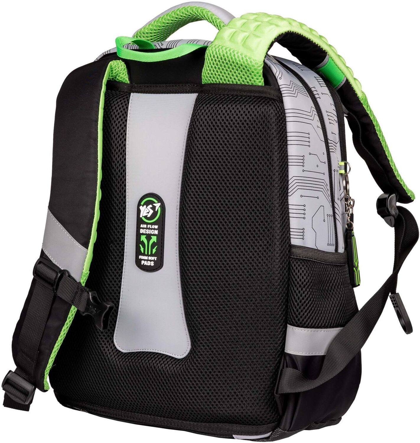Мягкий рюкзак Yes S-52 Ergo: легкий, функциональный и инновационный рюкзак для школьников младшей школы. Ищете идеальный рюкзак для первоклассника или ученика младшей школы? Знакомьтесь с уникальной моделью школьного ортопедического рюкзака S-52 Ergo Yes. Это не просто рюкзак - это инновационная, легкая, вместительная и функциональная модель, которая имеет много удобных карманов, надежную фурнитуру и крутые дизайны, поэтому станет незаменимым спутником вашего школьника. Модель ортопедического рюкзака Yes S-52 Ergo имеет множество преимуществ. Ортопедическая спинка гарантирует оптимальную поддержку позвоночника и здоровье спины вашего ребенка. Компактные размеры модели идеально подходят для небольших ростом первоклассников, рюкзак имеет эргономичную конструкцию, адаптированную для комфортной носки. Главным преимуществом ортопедического рюкзака Yes S-52 Ergo является внедренная новейшая разработка в области эргономики - система 3S. Это особая система крепления лямок, которая является частью спинки рюкзака и оказывает амортизирующий эффект. При использовании рюкзака с системой 3S существенно повышаются ортопедические свойства спинки, благодаря чему давление на спину и плечи ребенка распределяется более равномерно. Экспериментальным путем установлено, что школьный рюкзак Yes S-52 Ergo с ортопедической спинкой с системой 3S оказывает меньшее (до 70%) давление на плечи ребенка при ходьбе, чем обычные рюкзаки. Уникальные характеристики системы 3S имеют патентные подтверждения. Благодаря 3S ваш школьник захочет самостоятельно носить свой рюкзак в школу, потому что это будет очень легко. Чехол от дождя, который скрыт в кармане на спинке рюкзака Yes S-52 Ergo, защитит рюкзак и его содержимое от неблагоприятных погодных условий.