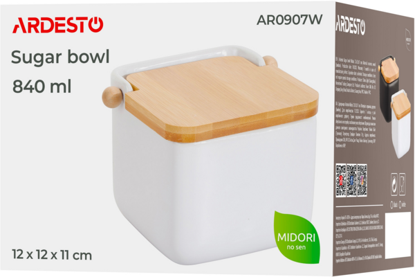 Сахарница Ardesto Midori 12х12х11см, 840мл, белый (AR0907W)