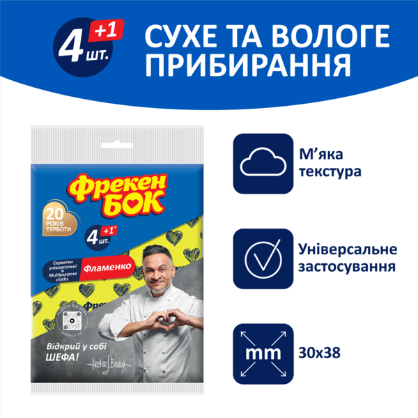 Салфетки вискозные Фрекен Бок Фламенко 4+1 шт