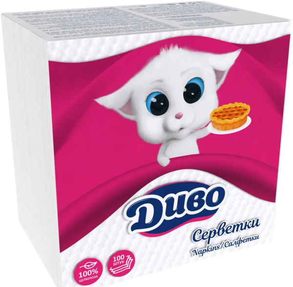 Салфетки столовые Диво 1 слой 33*33см 100шт БелыеСалфетки столовые Диво 1 слой 33*33см 100шт Белые