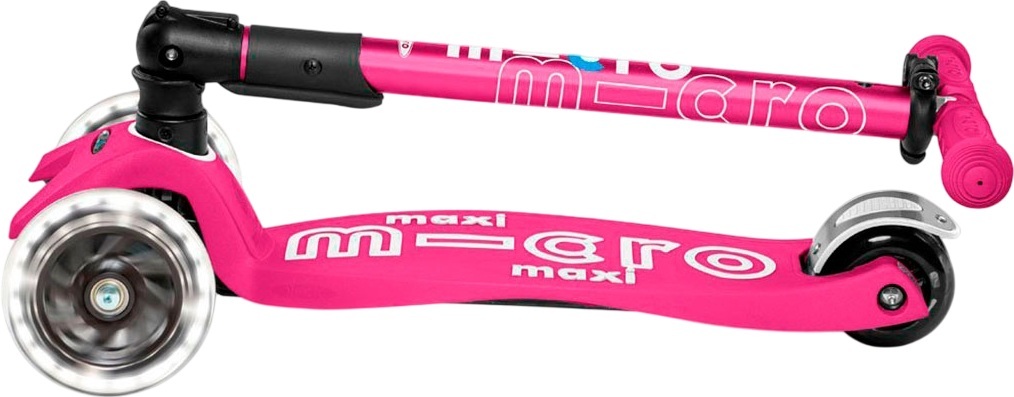 - Самокат Micro серии Maxi Deluxe LED – Розовый (сложный, до 50 kg, трехколесный, свет)