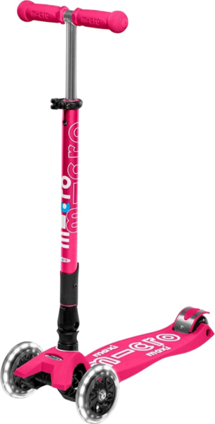 Самокат Micro серии Maxi Deluxe LED – Розовый (сложный, до 50 kg, трехколесный, свет)