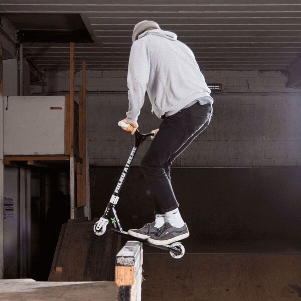 - Дека самоката невероятно прочная, устойчивая к прогибанию для более контролируемого выполнения трюков;