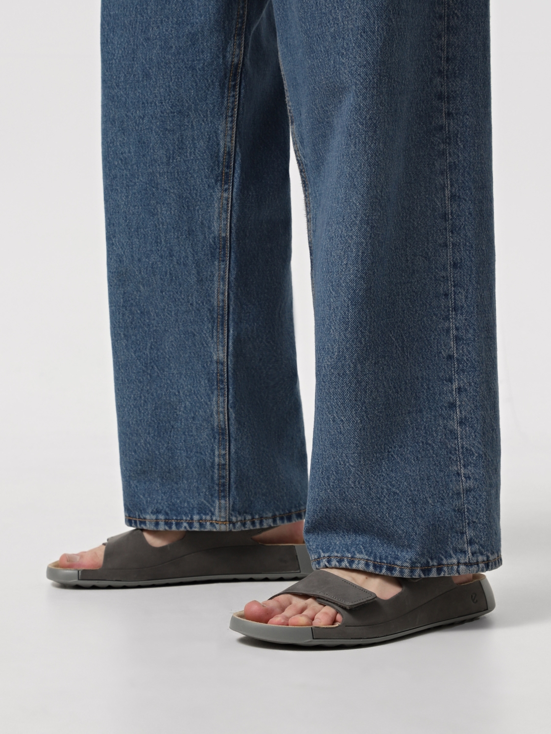 - Сандали изготовлены из нубука от Ecco;