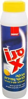 Порошок для чистки Sano Х эффективно удаляет все виды жировых загрязнений, пригоревшие пятна, отбеливает и дезинфецирует поверхности. Предназначен для чистки различных поверхностей на кухне, в ванной, в туалете. Не вызывает раздражения кожи рук и оставляет приятный запах лимона. Содержит супер активное моющее средство и отбеливатель на основе хлора. Не царапает поверхности.