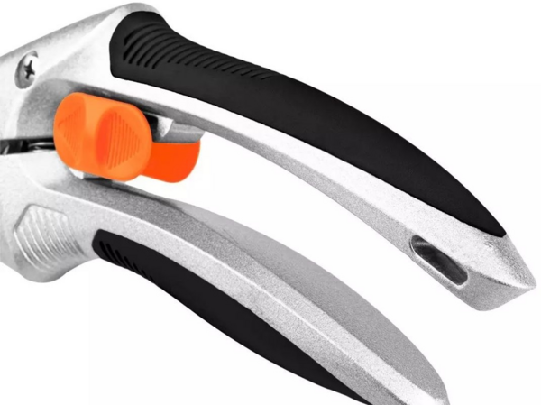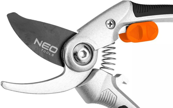 Секатор NEO с максимальным диаметром реза 20 мм. Лезвия с антипригарным покрытием, предназначенные для свежей древесины, делают секатор устойчивым к вытекающим растительным сокам, которые не оседают на металлической поверхности и поэтому не замедляют уборку в саду. Эргономичная рукоятка из легкого алюминия дополнительно покрыта резиной TPR, поэтому она надежнее лежит в ваших руках. Безопасность также обеспечивается встроенным фиксатором лезвия, который позволяет удобно хранить инструмент. Секатор торговой марки NEO отличается высокой прочностью и рассчитан на многосезонное использование.