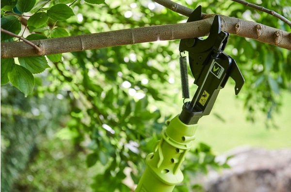 Аккумуляторный секатор для работы в труднодоступных местах.