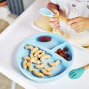 Изготовлено из 100% пищевого силикона. Это поощряет отлучение от груди и поддерживает самостоятельность. Помогает в развитии мелкой моторики и является здоровой альтернативой пластику. Подходит для духовки, микроволновой печи, аэрофритюрницы, холодильника и морозильной камеры при температуре от -40°C до 200°C. Поверхность должна быть гладкой, сухой и чистой для обеспечения всасывания.