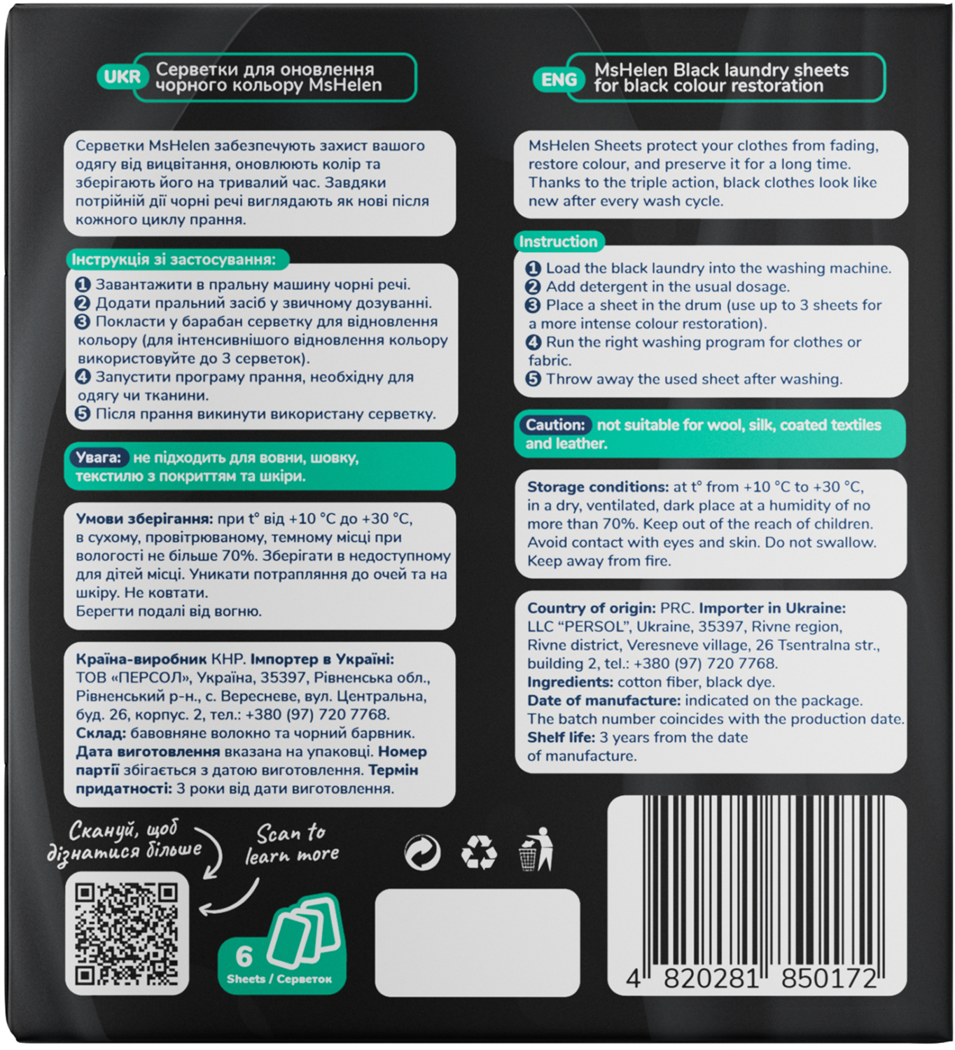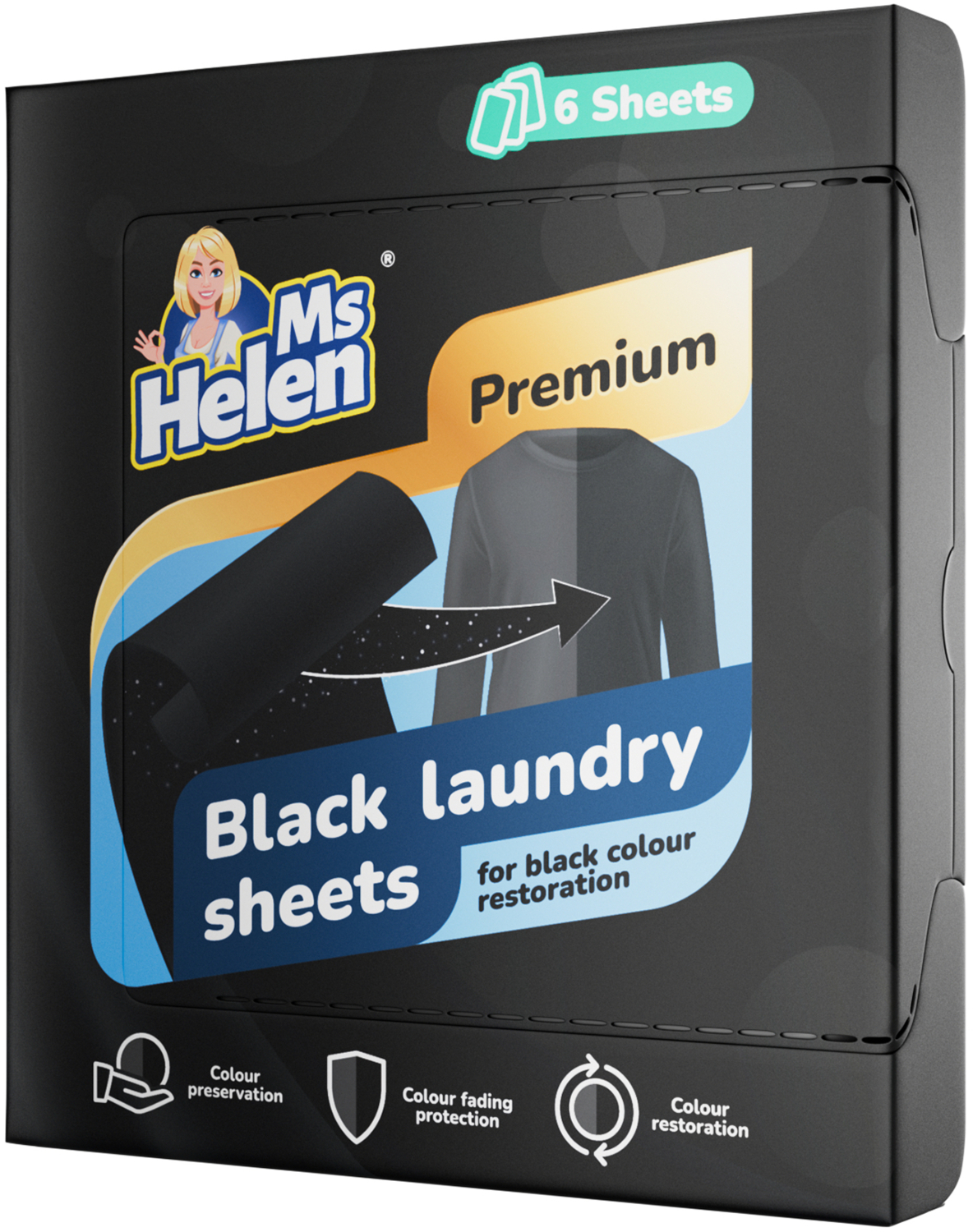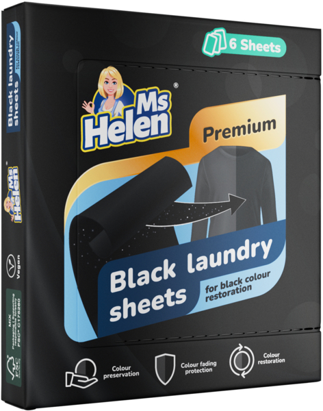 - Салфетки MsHelen обновляют насыщенность черной одежды во время обычной стирки;